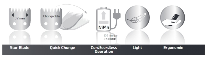 • Тип машинки:профессиональная особо легкая машинка с комбинированным питанием