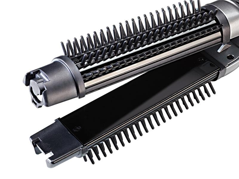 Двойная функция блокировки обеспечивает максимальную безопасность во время работы стайлера в закрытом положении. Жесткие щетинки позволяют легко получить объем и создать волны. Прибор идеален для использования на коротких и средней длины волосах.